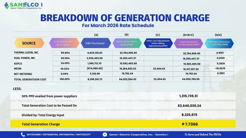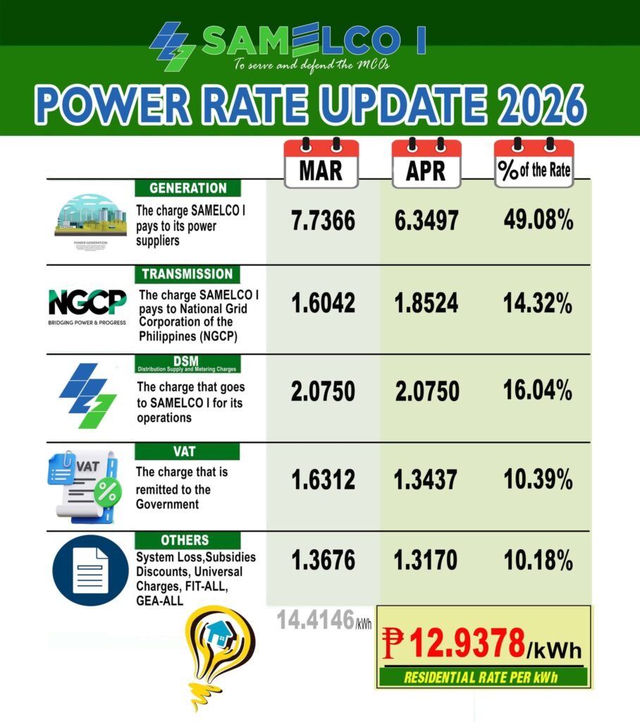 ๐๐จ๐ญ๐: Para sa mas klaro nga eksplenasyon, aadi an link san SAMELCOnnect Episode kun diin ginharampangan an Power Rate para san bulan san Enero 2026: