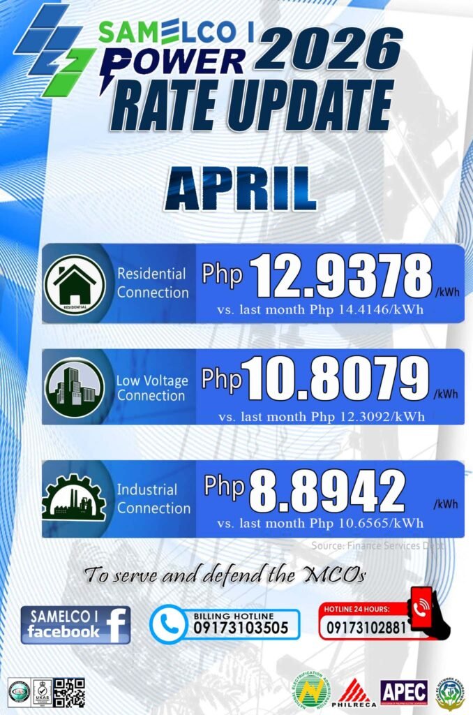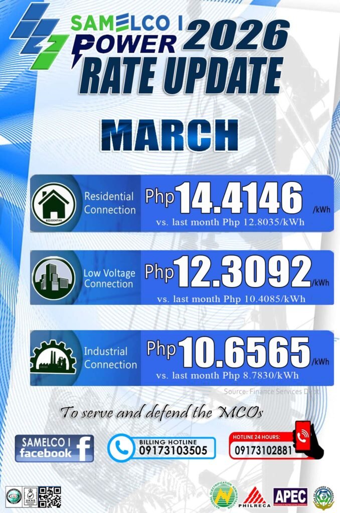 Bisan diri naton mapredict an presyo sa merkado, padayon an SAMELCO I sa pagbantay ngan paningkamot nga magpapabilin an patas ngan abot-kaya nga serbisyo para san aton mga MCOs.